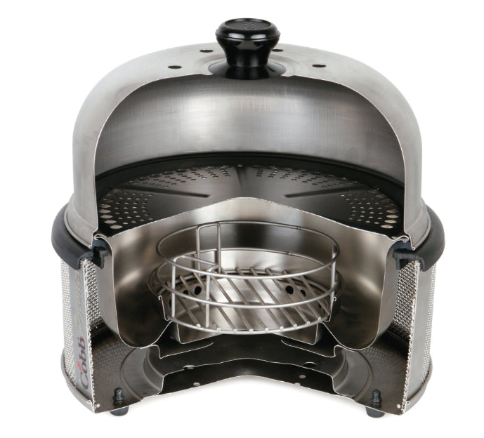 El modelo de la parrilla obtiene su domo escencial y característico para crear un horno y dejar que la comida sea horneada para así conservar su sabor y jugos.