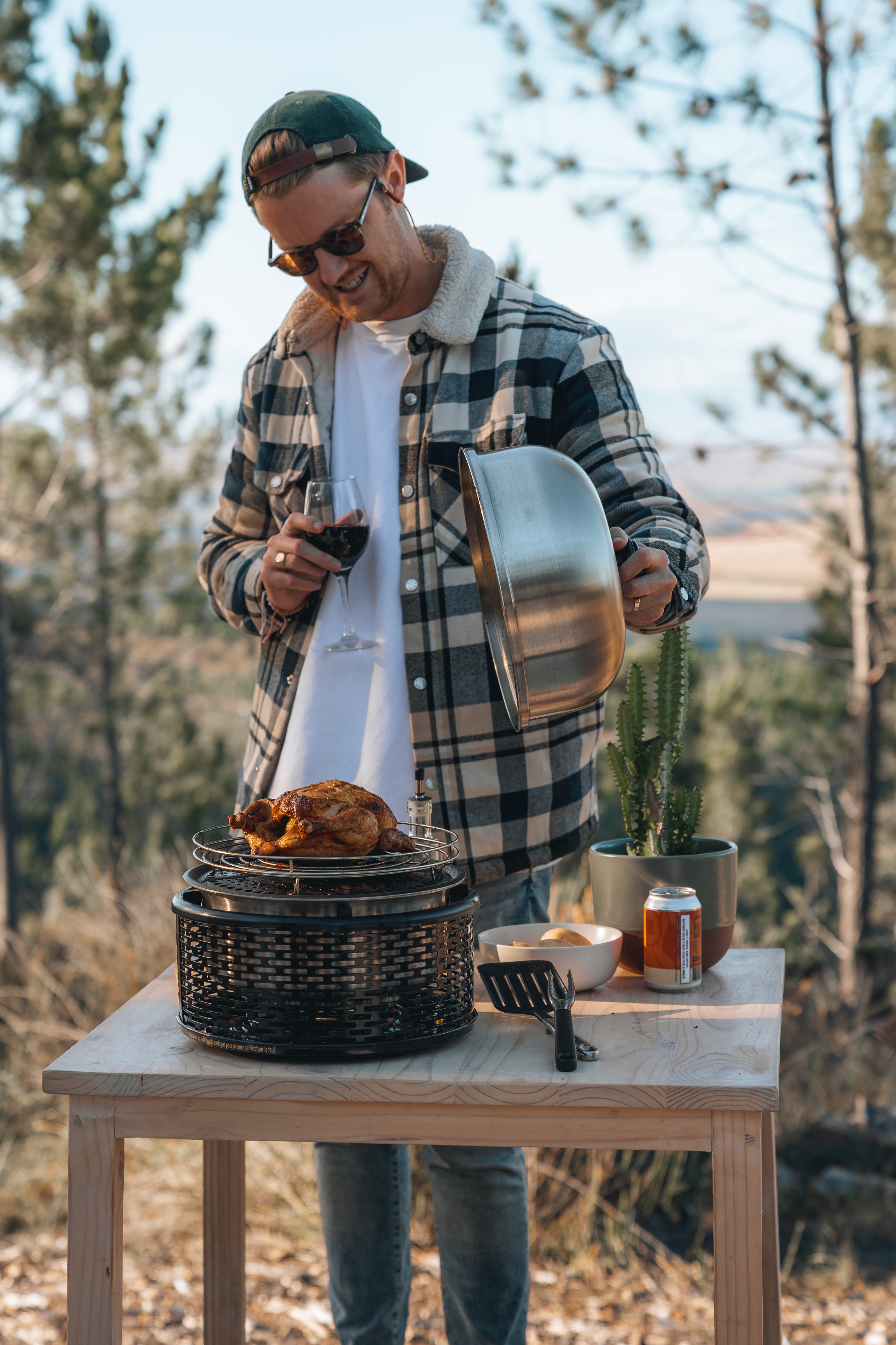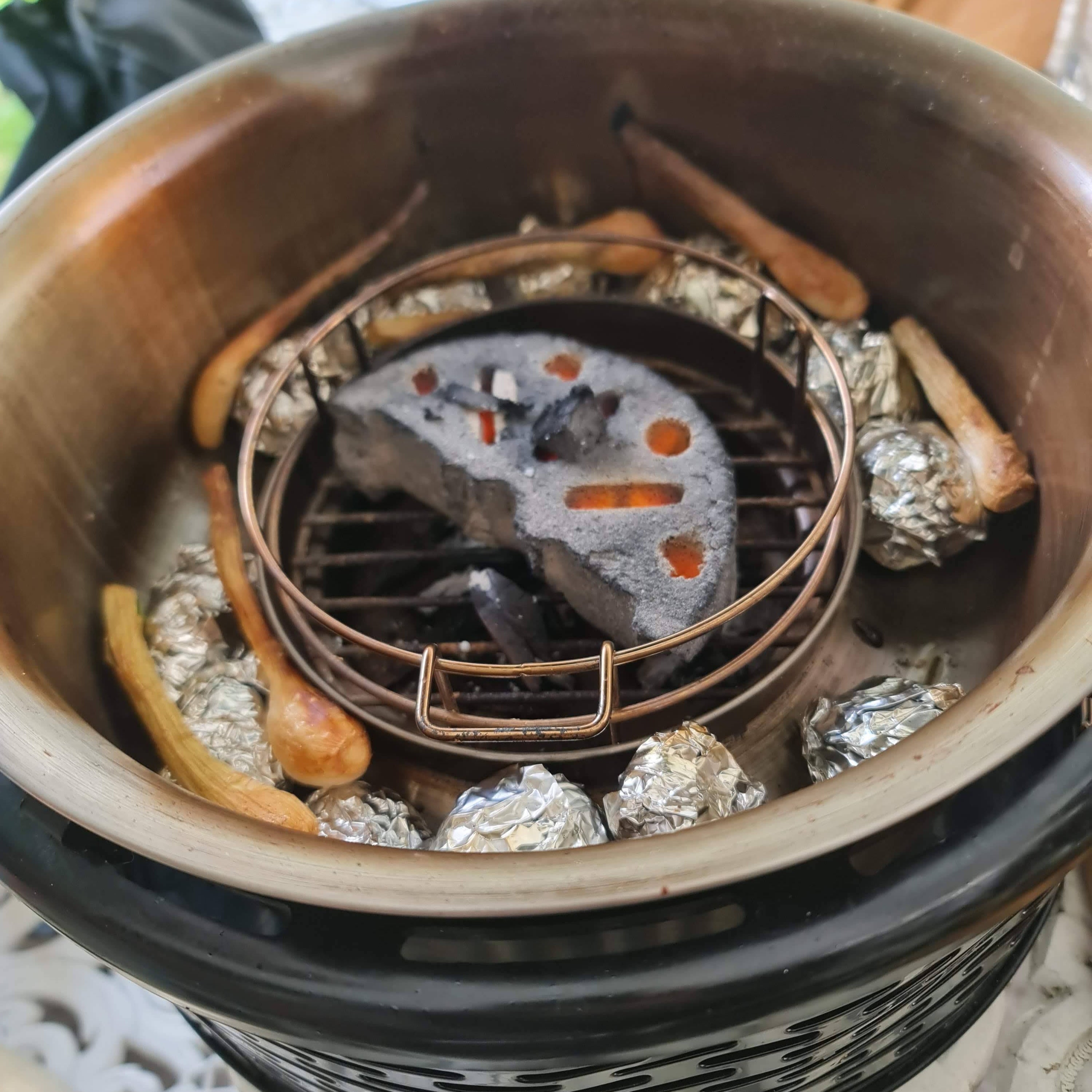 - Utiliza solo 12 briquetas de carbón ya que su sistema aislado evita que el calor escape y se concentra al interior con el uso de su domo.